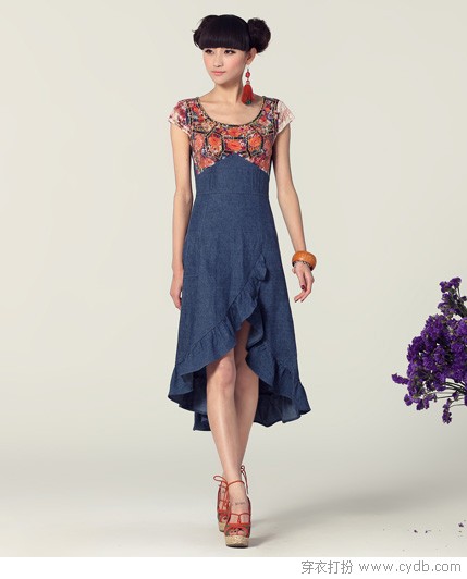 02 荷叶边点缀的不规则裙摆赋予了裙身飘逸灵动的质感,高收腰的轮廓,让双S的曲线立刻显现。拼接、绣花渲染的整体,烘托出精致的小圆领,锁骨显了,腰身细了,在视觉上轻松减掉五公斤。