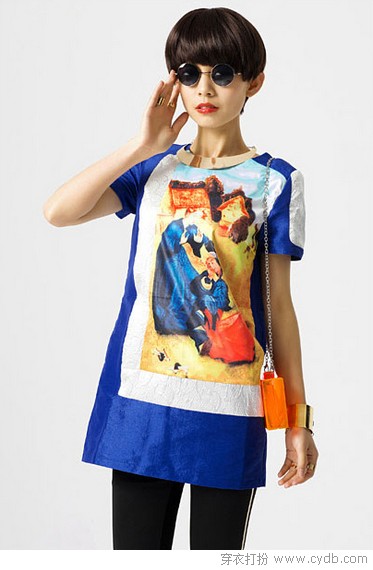 01 复古油画印花色彩浓烈,搭配抢眼的蓝白撞色让时尚度飙升。最IN的装扮莫过于搭配一条紧身leggings,再来个复古红唇妆配潮感小墨镜,十足的摩登女郎范儿。