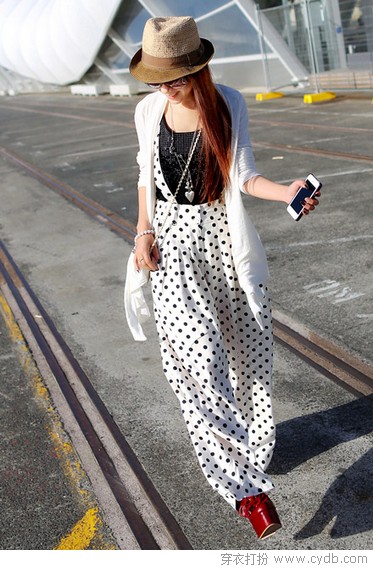 07 盲目露肤,寻求清爽的姑娘,在日头毒辣的季节可不要忘了防晒喔。丝薄飘逸的长袖衣裤还是要备上两件的。这款背带可拆卸的阔腿裤,赋予了衣衣两穿的性能,波点点缀,让整体显得更加灵动轻盈。