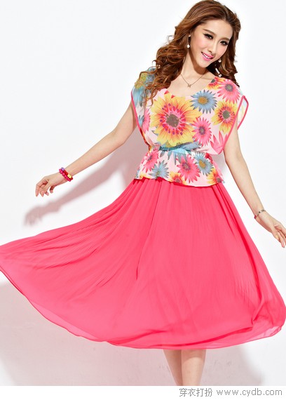 09 玫红色+泡泡袖+公主收腰,每一个养眼的要素都紧踏着小女人甜美可爱的节奏,娇柔、甜美、轻媚,就差那么一点点轻松与灵动,还好有太阳花的热情救场,让心儿雀跃的都市出挑更显丰胸纤腰的轻灵娇俏。