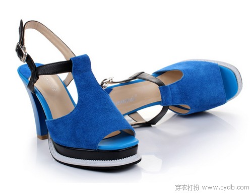 02 显高挑的T字鞋能够拉长双腿线条,也能够修饰过宽的脚面,选择鞋面设计相对饱满的鞋型即可。整个脚面只在左右两侧露出一小块面积,看上去纤细而小巧。蓝色具有冷色调所共有的视觉收缩效果,更显脚型纤长。