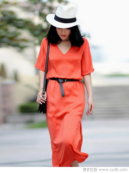 04 短袖V领,比无袖来得更矜持一些,宽松大码,也更适合有些肉肉的姑娘们,连衣裙加长了长度,本身就增强了气场。一条系腰带随意系出腰身,更拉长下身长度。不高不矮的侧开叉,温柔有余,妩媚有度。
